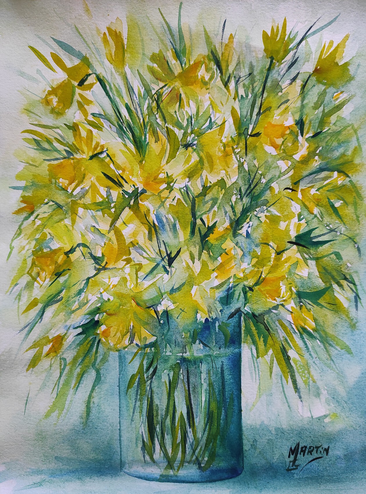 Bouquet jonquilles aquarelle format 33 x 25 cm