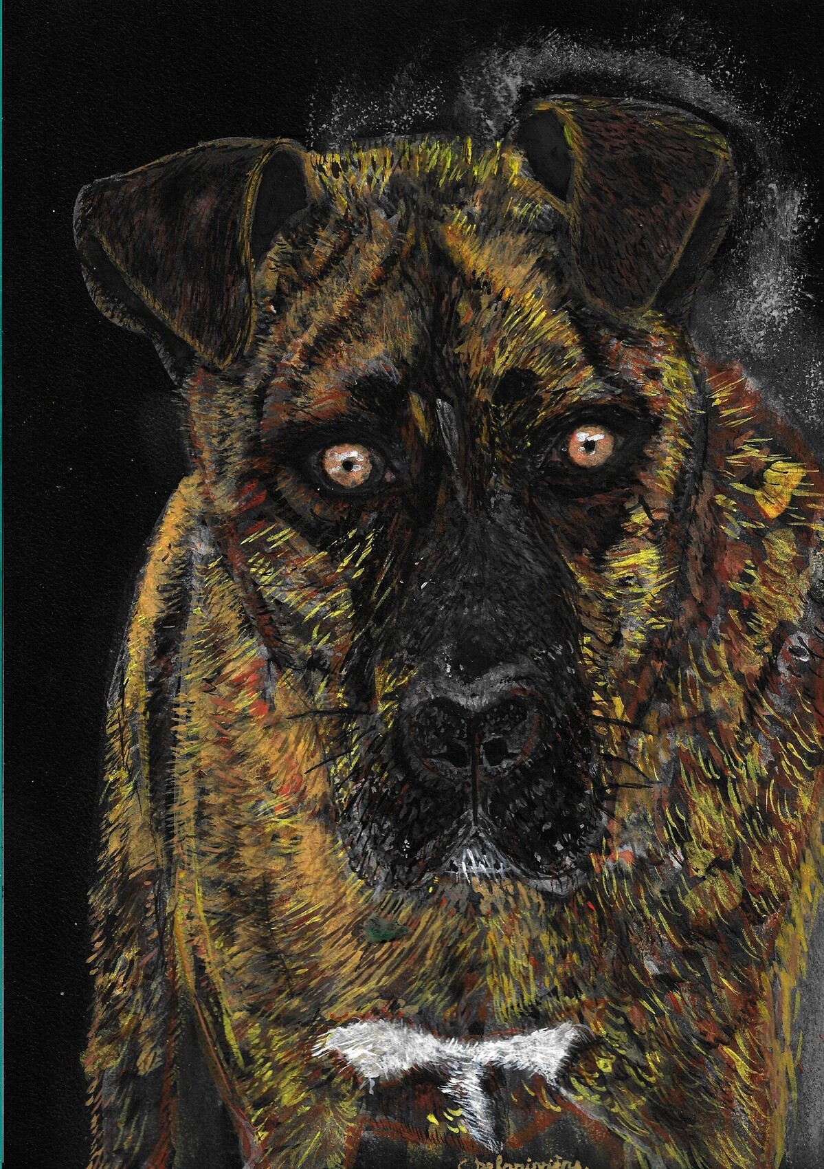 C'EST SUR IL A PAS LE REGARD SYMPA votre chien, il fout les jetons. Il est comment en vrai? Si ça se trouve c'est le plus calin des chiens... Bien réalisé toutefois, bravo.