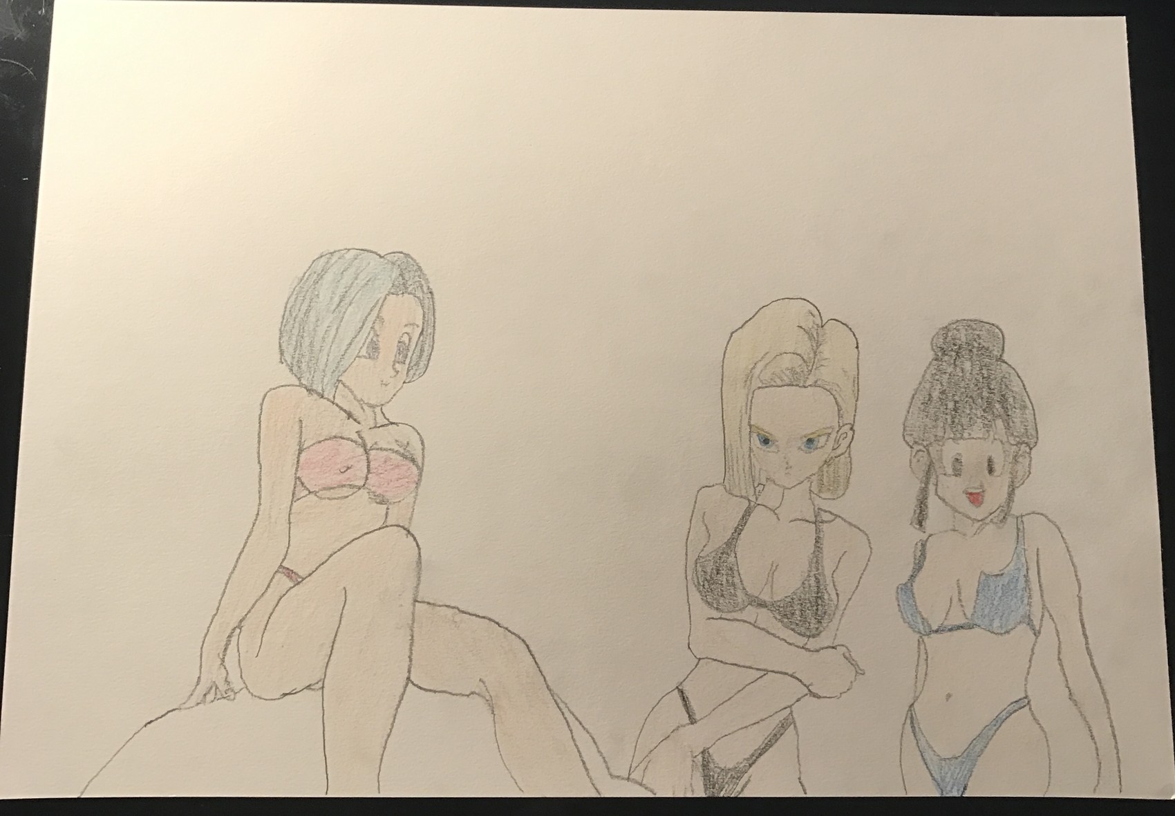 dessin de bulma C18 et chichi de dragon ball en maillot de bain A4