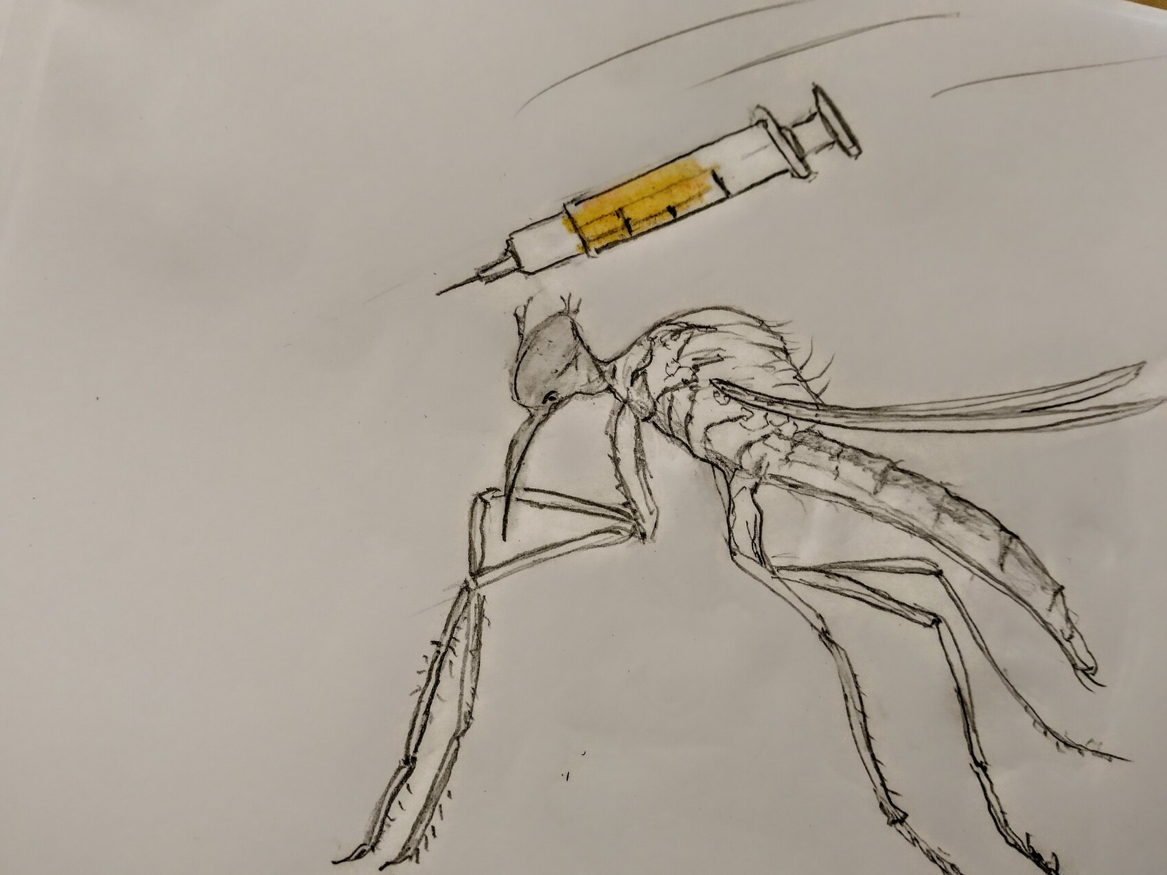 Franchement, entre la piqure de la moustique et celle du vaccin, je préfère le type médical, que celui de l'insecte désagréable qui nous hante la nuit avec ses bruits, et piqures mortelles ! même si la piqure du vaccin fait peur ! bravo belle illustration, mais je peux vous dire, que c'est moustique qui gagne en record de gravité, contre le vaccin du covid !
