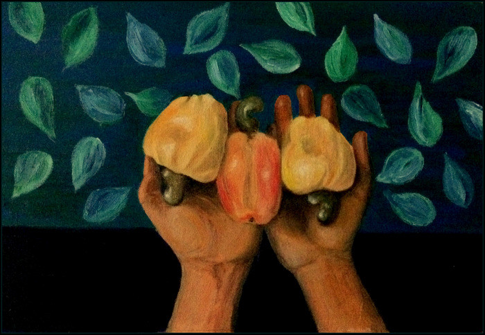 Hello Marie-cé ! comme ces mains sont belles qui nous offrent de jolis cajous, bien colorés et mis en valeur au noir et ces feuilles qui dansent ! Je vais vous en prendre une pour l'apéro ! Merci à vous ...