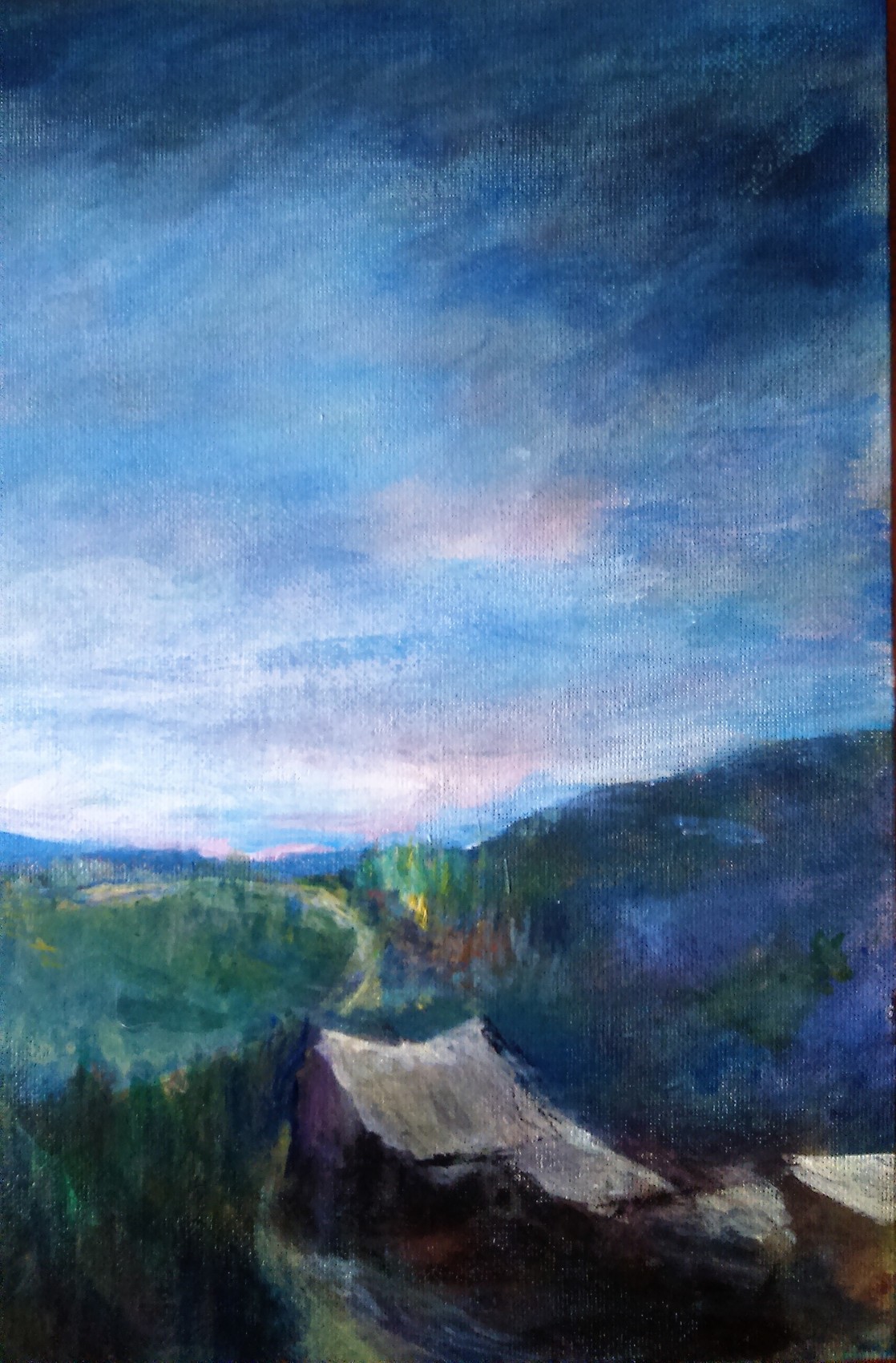 les bleus et les roux sombres donnent au paysage un petit côté inquiétant ; on a peur du jour qui point. Bravo pour ce rendu et cette ambiance