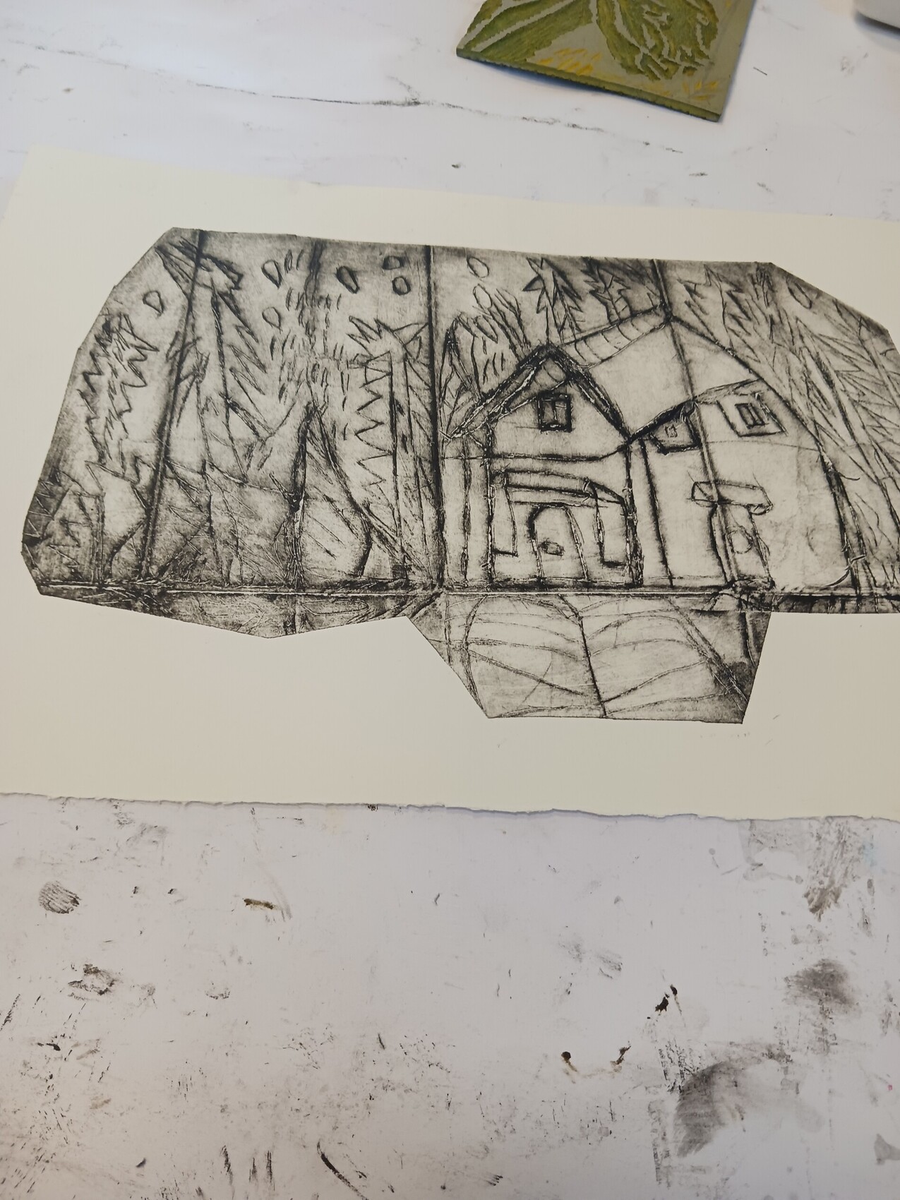 Paysage de campagne en hiver, gravure sur tetrabrik