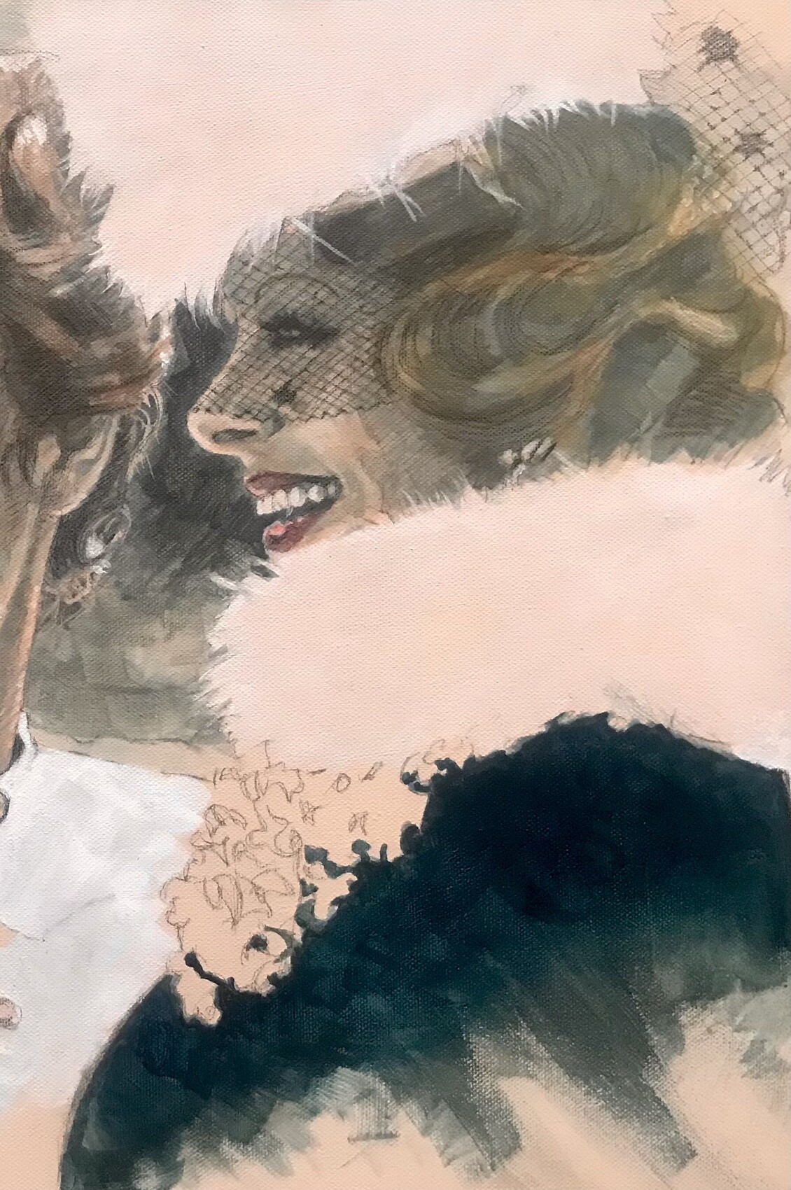 Acrylique sur toile - détail 55 x 38 Série en cours sur le thème du long métrage 8 1/2 de Fellini