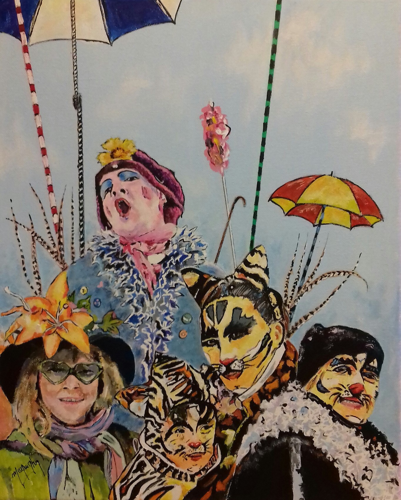 Quelle ambiance festive ! Superbe travail sur chaque visage "décoré". Animé, joyeux et coloré ! Un grand bravo momo.