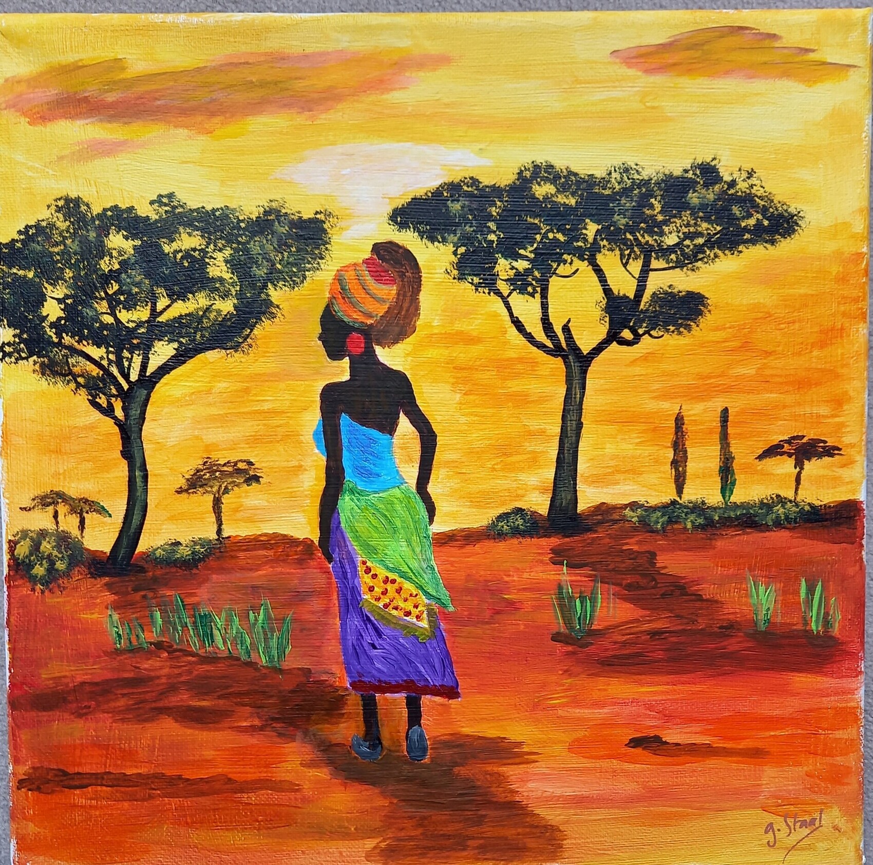 Une œuvre qui s'exprime avec beauté, tant par ses couleurs que par le personnage représenté sur votre toile à l'acrylique. Bravo !
