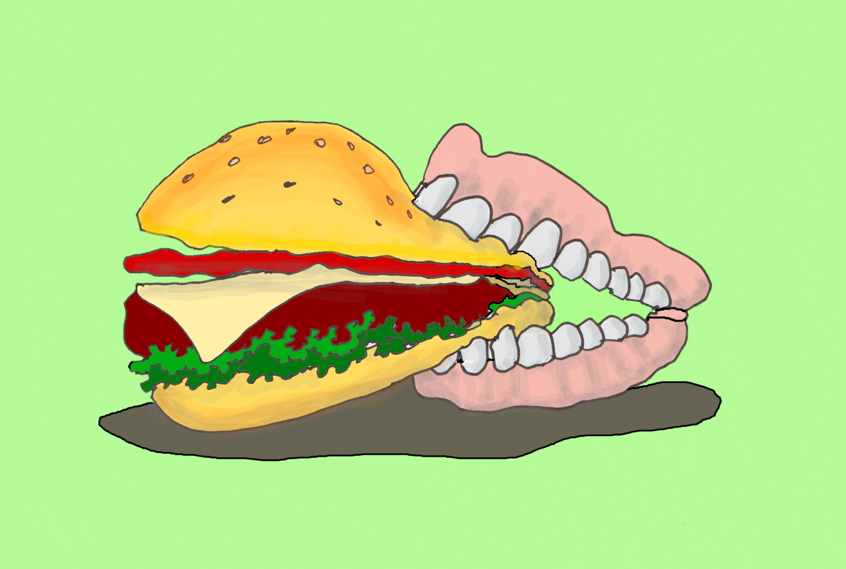 Dessin humoristique 11/31,réalisé au crayon feutre pour évoquer le mot "casse croute" lors du onzième jour du défi d'octobre 2024 : 1 dessin par jour pendant 31 jours. Couleurs à l'aide de paint.net