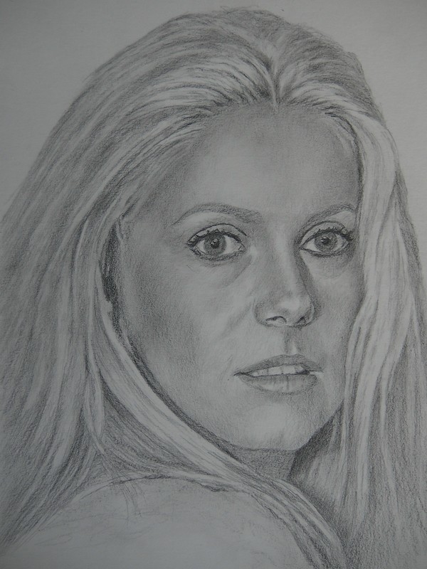 Portrait de C.Deneuve époque du film "Le Sauvage" 21/29,7 Crayon de couleur noir Papier blanc Canson