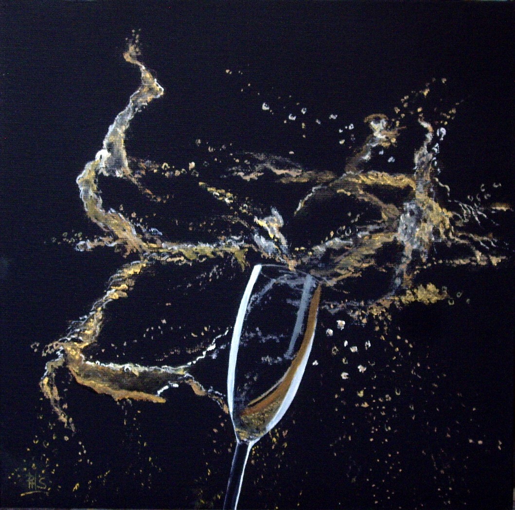 Champagne de 25 x 25 huile sur toile Bientôt une vie " normale " après le deconfinement , alors champagne...