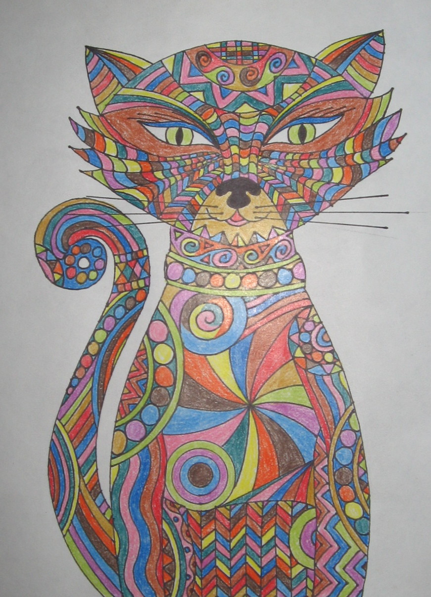 Dessin au crayon de feutre noir et crayons de couleurs.