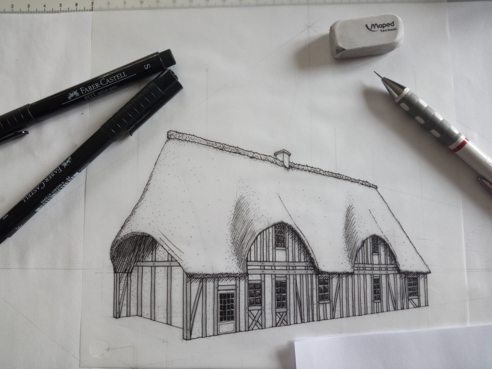 Dessin sur A3, construit à la règle, mis au propre sur du calque à l'encre de Chine