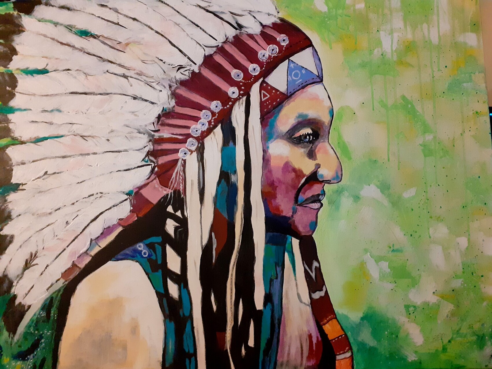 Chef Apache Peinture acrylique de marque Golden sur toile coton 60/80/1.5 cm Le flash peut légèrement modifié les couleurs Peint en 2022