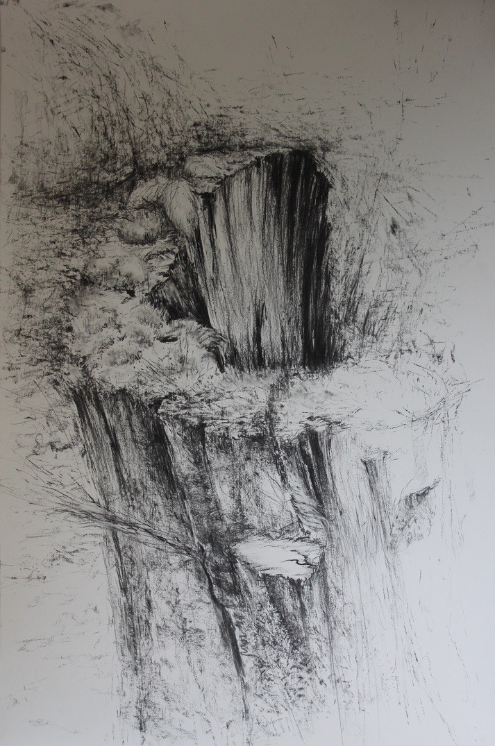 fusain sur papier canson dim: 1.10 m x 75 cm Encadrement bois foncé et verre anti-reflet