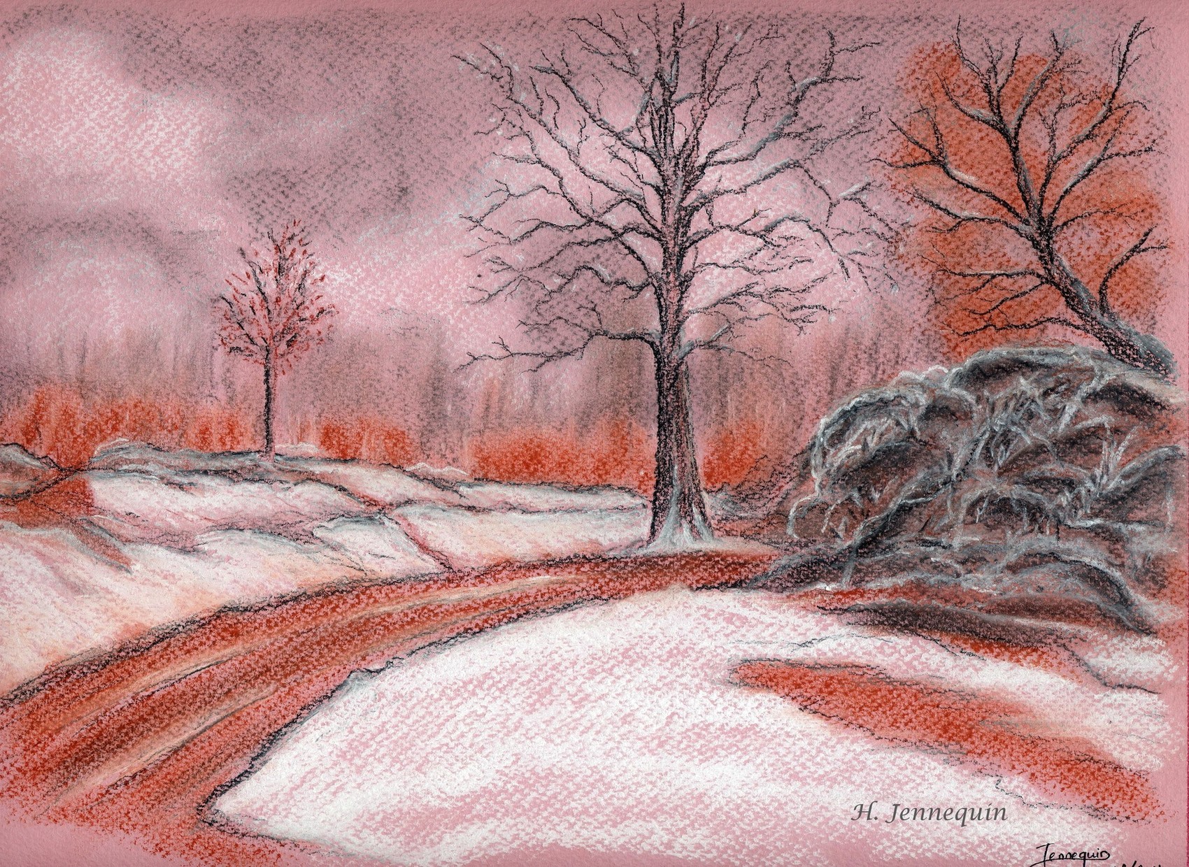 Chemin hivernal - Décembre 2014 - Sanguine, Pierre noire et craie d'art - 30x24 - Exercice