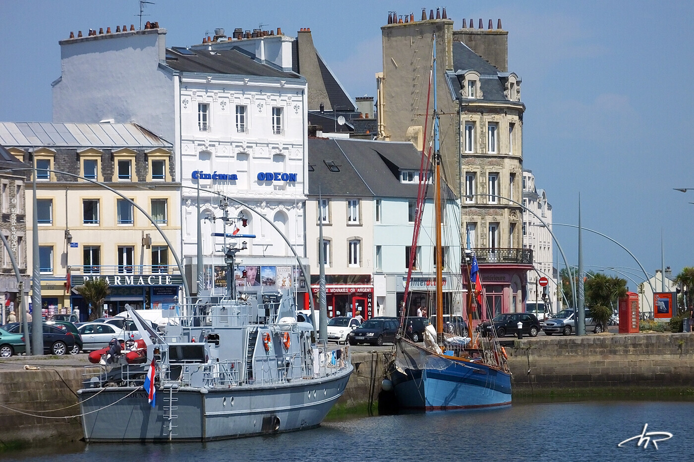 Cherbourg et son bassin du commerce surplombé par le cinéma