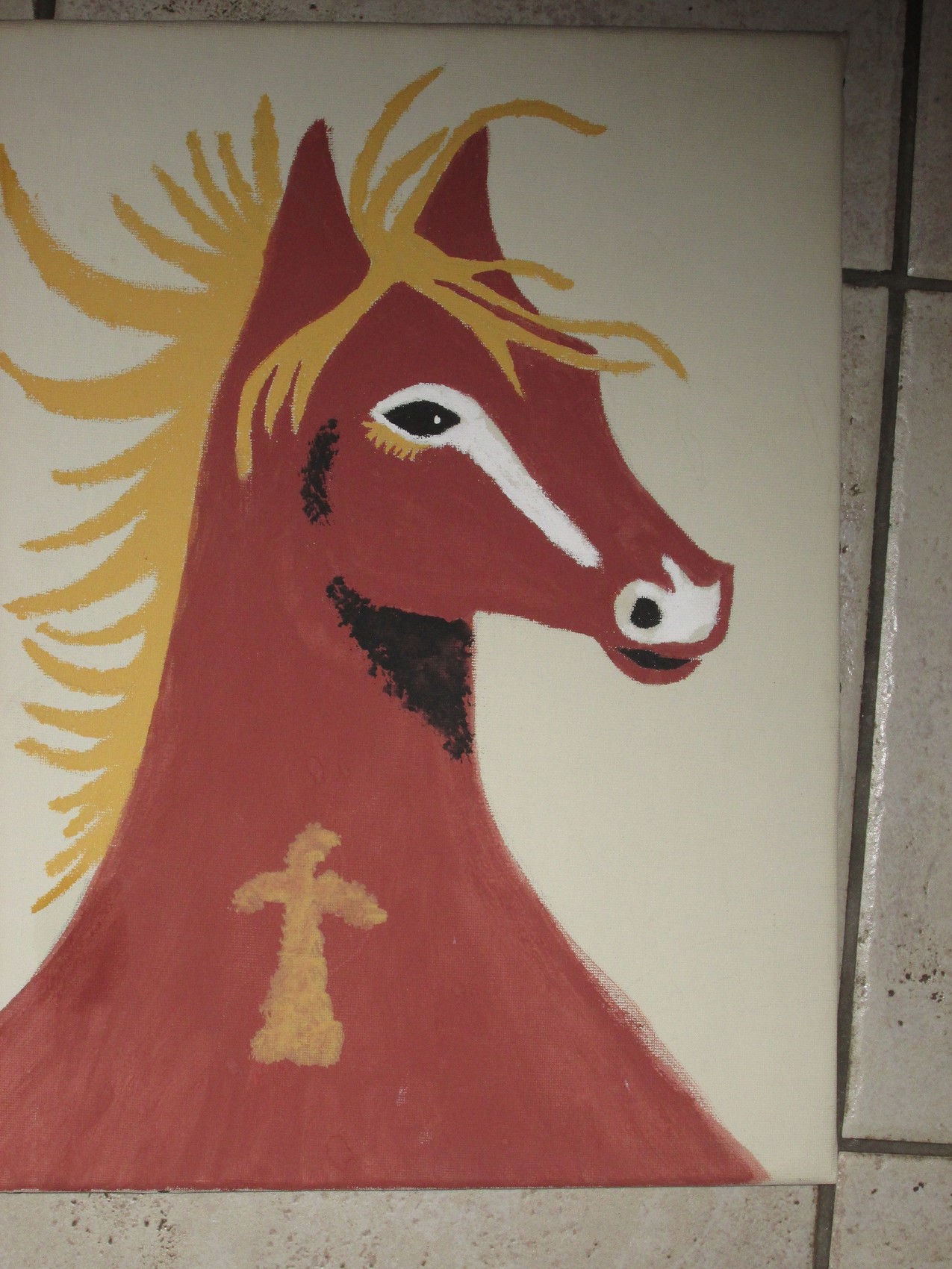 Peinture à la gouache 30X40 cm fait en 2008 j'ai un attachement particulier pour ce tableau car il est le premier d'une grande lignée que je souhaite, le cheval ce n'est pas qu'une grande bête puissante et forte il est aussi très sensible, je voulais montrer cette sensibilité. y suis je arrivée selon vous?