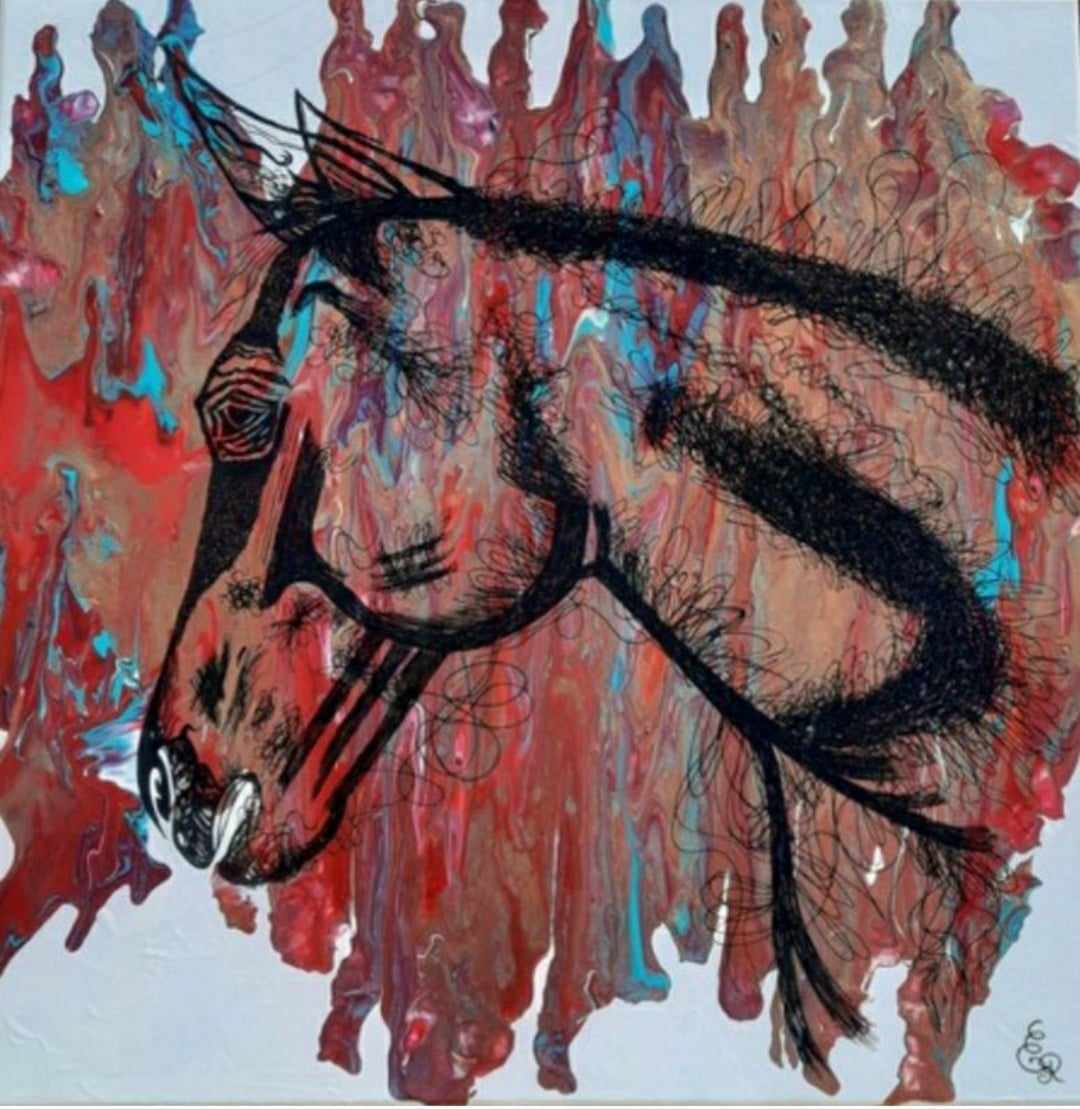 Superbe tableau du cheval multicolore, peint avec de la peinture acrylique sur une toile 100 % coton et châssis en bois. Dimensions 40x40cm Ce tableau créera une ambiance coloré et cosy dans votre chambre ou salon. vendu sans encadrement