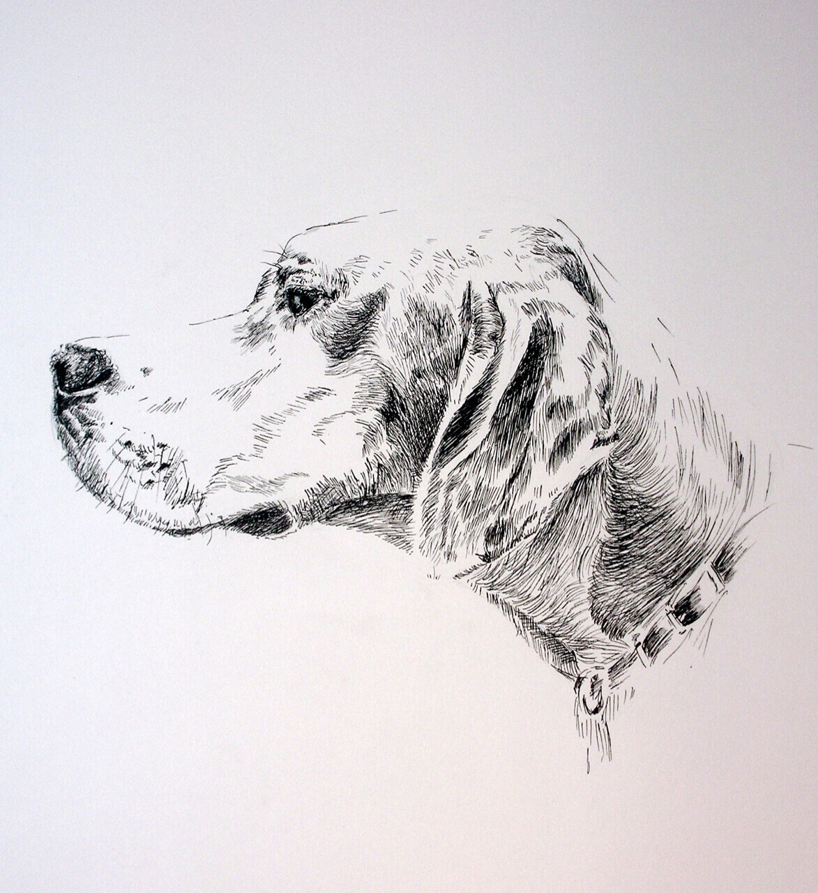 Dessin de chien de chasse à l'arrêt. Dessin réalisé en 2007 au crayon noir, en 20/30cm. Je peux réaliser ce type de dessin, personnalisé sur photo, à la demande.