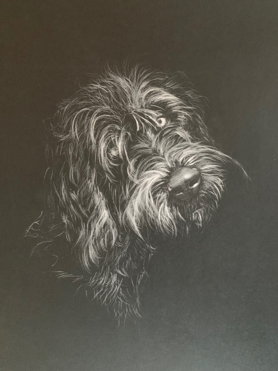 Ce dessin a été réalisé à la craie blanche sur papier noir. "Exprimer, mais ne pas tout dire"... Je peux reproduire ce dessin ou réaliser des dessins d'animaux personnalisés sur commande et sur photo.