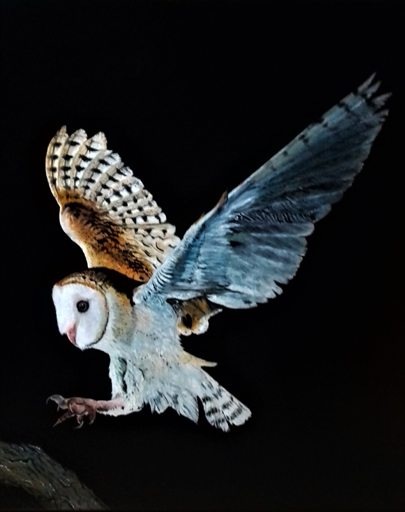 Quelle merveille ! Elle se détache sur ce fond "nuit" comme dans la réalité, Un magnifique travail de précisions, sur les plumes et le mouvement qui nous la montre au moment de se poser. Une superbe création. Un grand bravo momo. Bonne soirée.