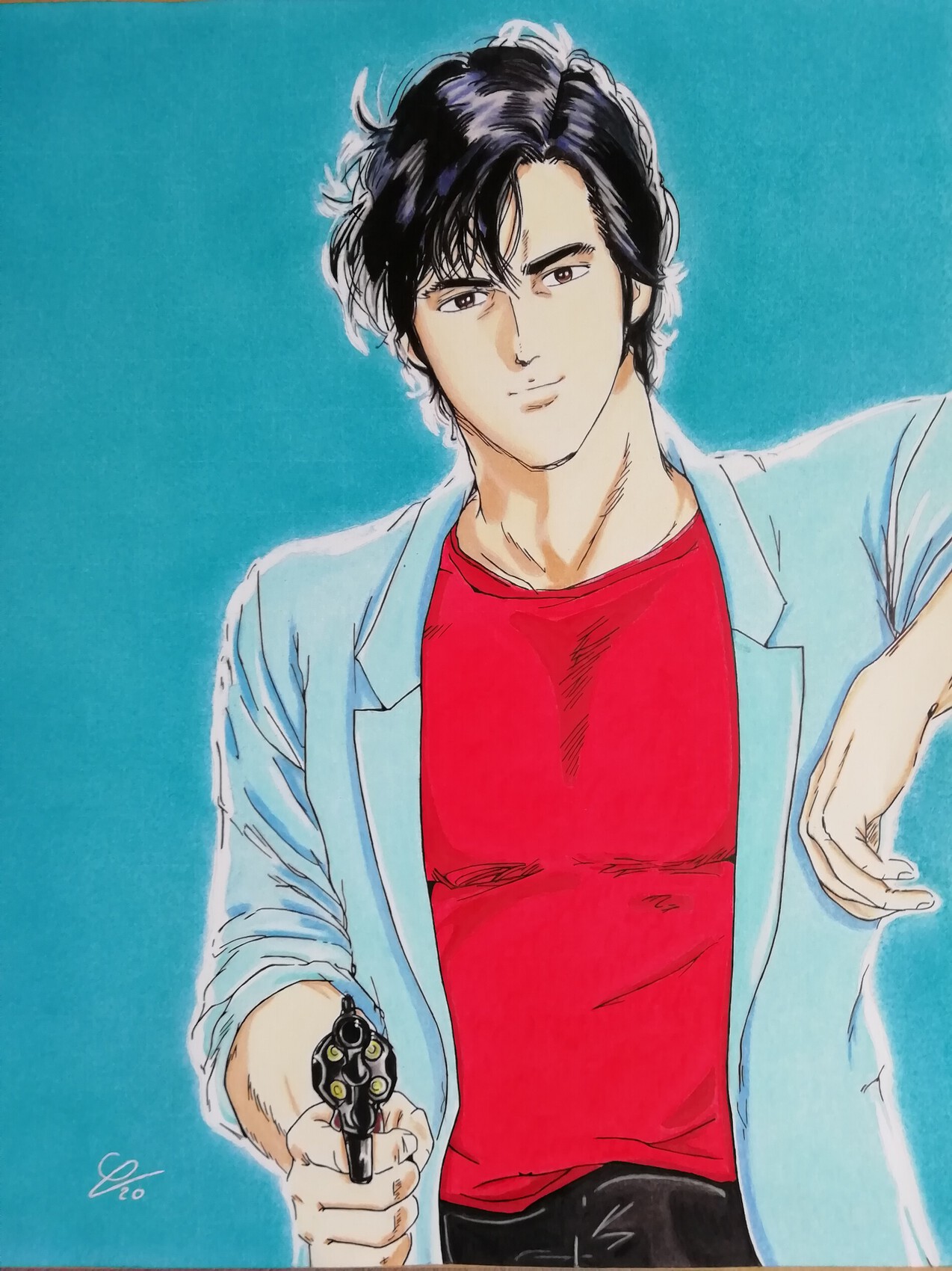 City Hunter , Ryo Seaba réaliser aux crayons polychromos et aux pastels. dimension 50x60 cm . envoie rapide et soigné. instagram blondin76_31
