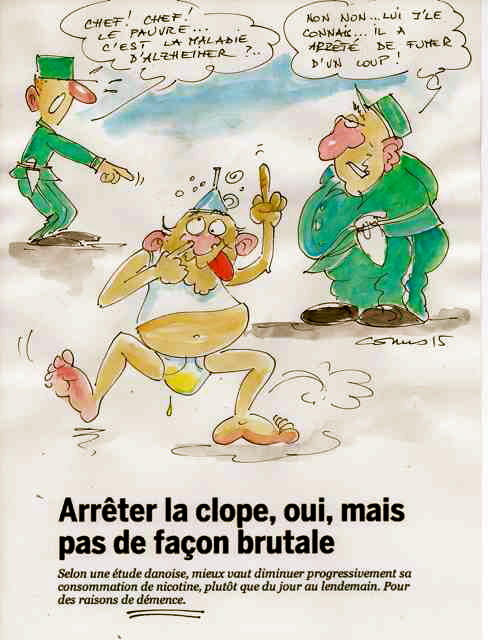 c'est quand même une vraie saloperie la clope !j'en connais un rayon : il y a 3 ans, on m'a dit texto "continuez comme ça et dans 6 mois vous êtes mort !" J'ai stoppé net après 42 ans de cigarettes....j'ai pris la décision une semaine après en 1 millième de seconde en me disant "c'est fini j'arrête !"