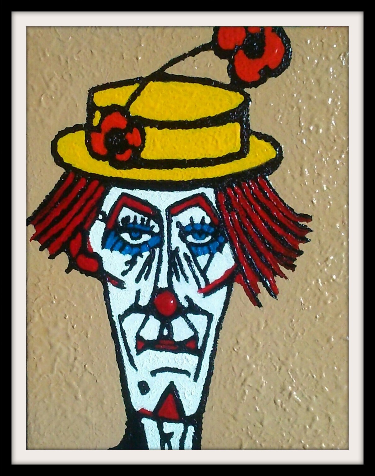 Clown Fleur. Acrylique, toile carton 30 x 24 cm. Hommage à Bernard Buffet. Inspiré d’après Clown Vert de Bernard Buffet 1966. https://www.artpal.com/cothy-art1