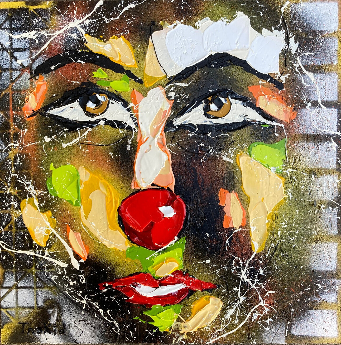 Le tableau du week-end avec pleins de défauts, mais ce n'est pas grave!!! Clown (acrylique sur OSB 40x40cm) Bon dimanche ++