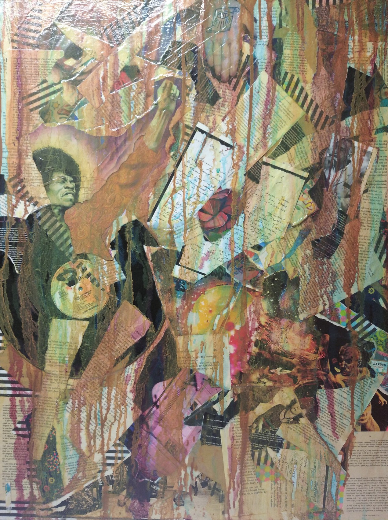Collage et Peinture huile sur toile 60x80cm Pèse 2kg Vernis brillant Emballage soigné et envoi rapide