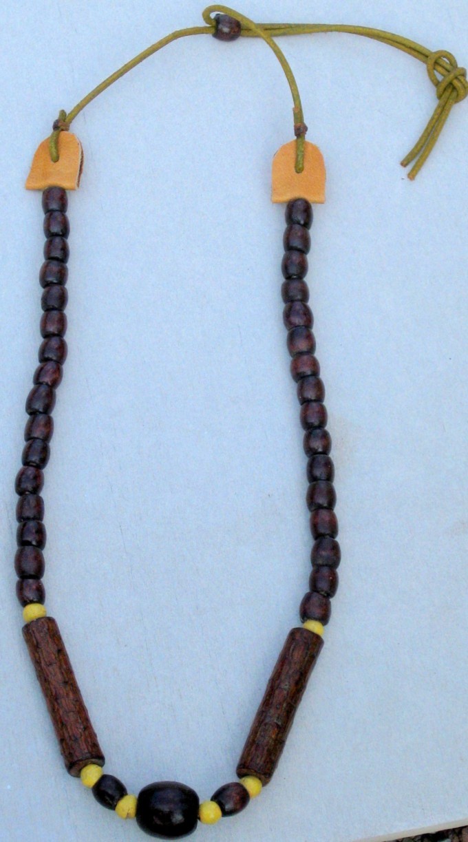 Collier bois fermeture par lacet cuir et boule "glissante".