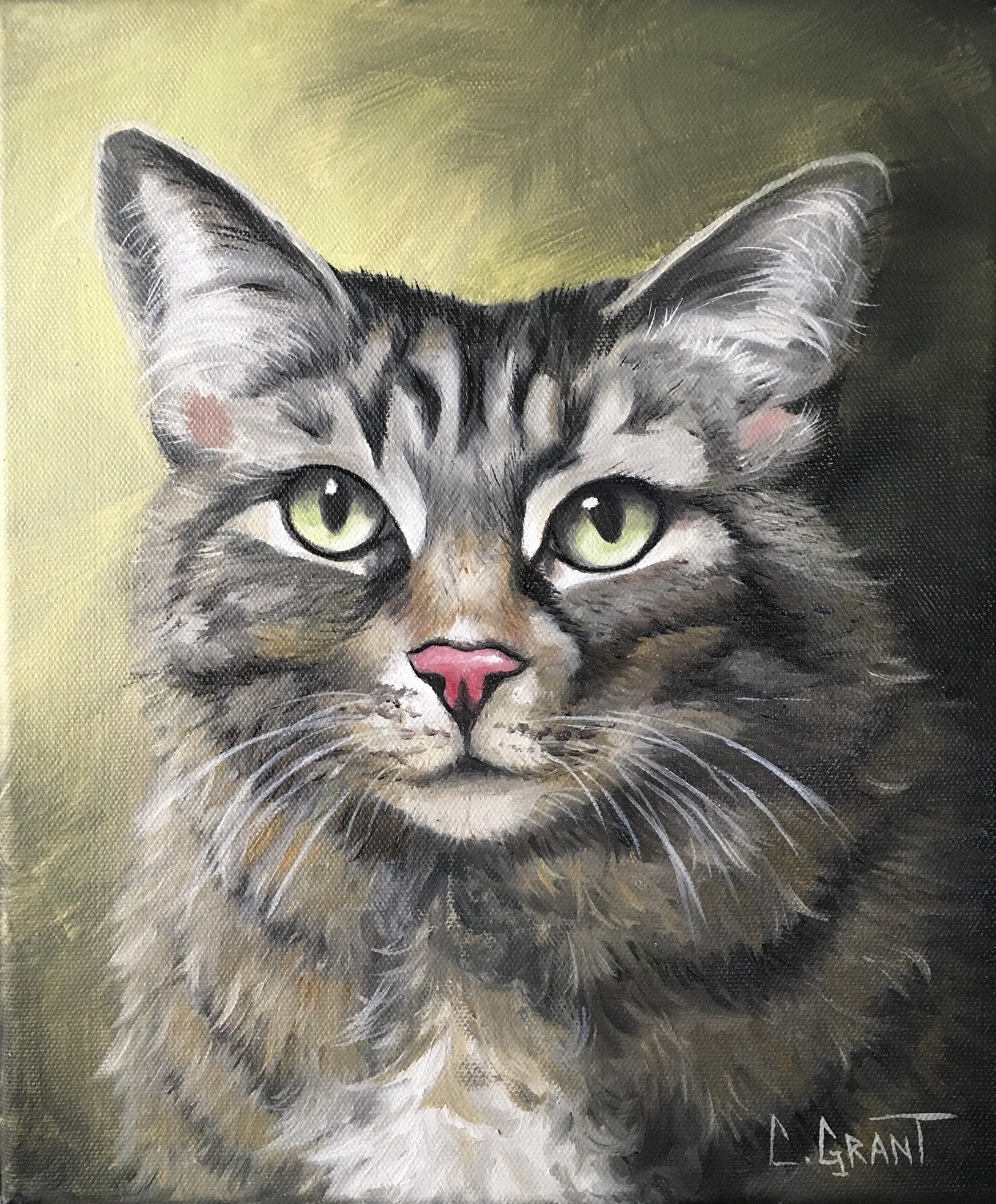 Huile sur toile Chaque commande m’apporte un nouveau défi, et j’aime particulièrement peindre des animaux de compagnie. Je me fait un devoir de les présenter sous leur meilleur jour et je m’assure que leur maître saura les reconnaître. Vos photos seront mon inspiration !