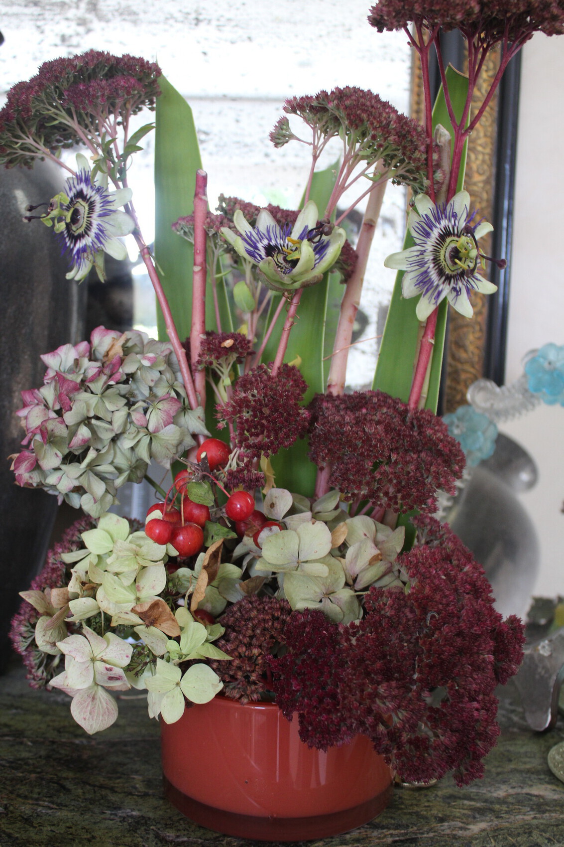 Composition florale entièrement réalisée avec les fleurs de mon jardin