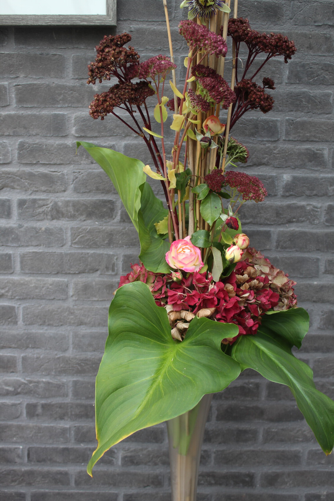 Composition florale entièrement réalisé avec des fleurs de mon jardin Vase sur pied 1,10 m