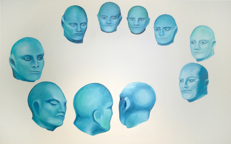 Novembre 2010. Huile sur toile de 160 x 100 cm. Un groupe de "Fantômas" aux traits et expressions diverses en cercle sur fond blanc non peint. Pourquoi Fantômas? Et bien parce que ce masque qui évoquait l'horreur dans les années 70 est devenu monnaie courante grâce à la chirurgie esthétique. On les croise dans la rue, et bien qu'une fascination nous pousse à les observer, on sent bien qu'un visage lifté est plus proche du monstrueux que de la jeunesse retrouvée. Et ça, ça m'interesse.