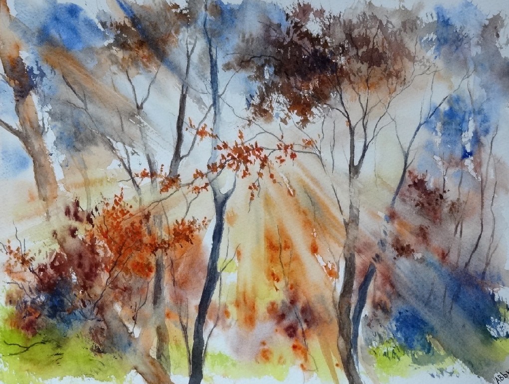 Aquarelle sur papier 300g Grain fin Contre-jour en forêt 22 x 31 cm