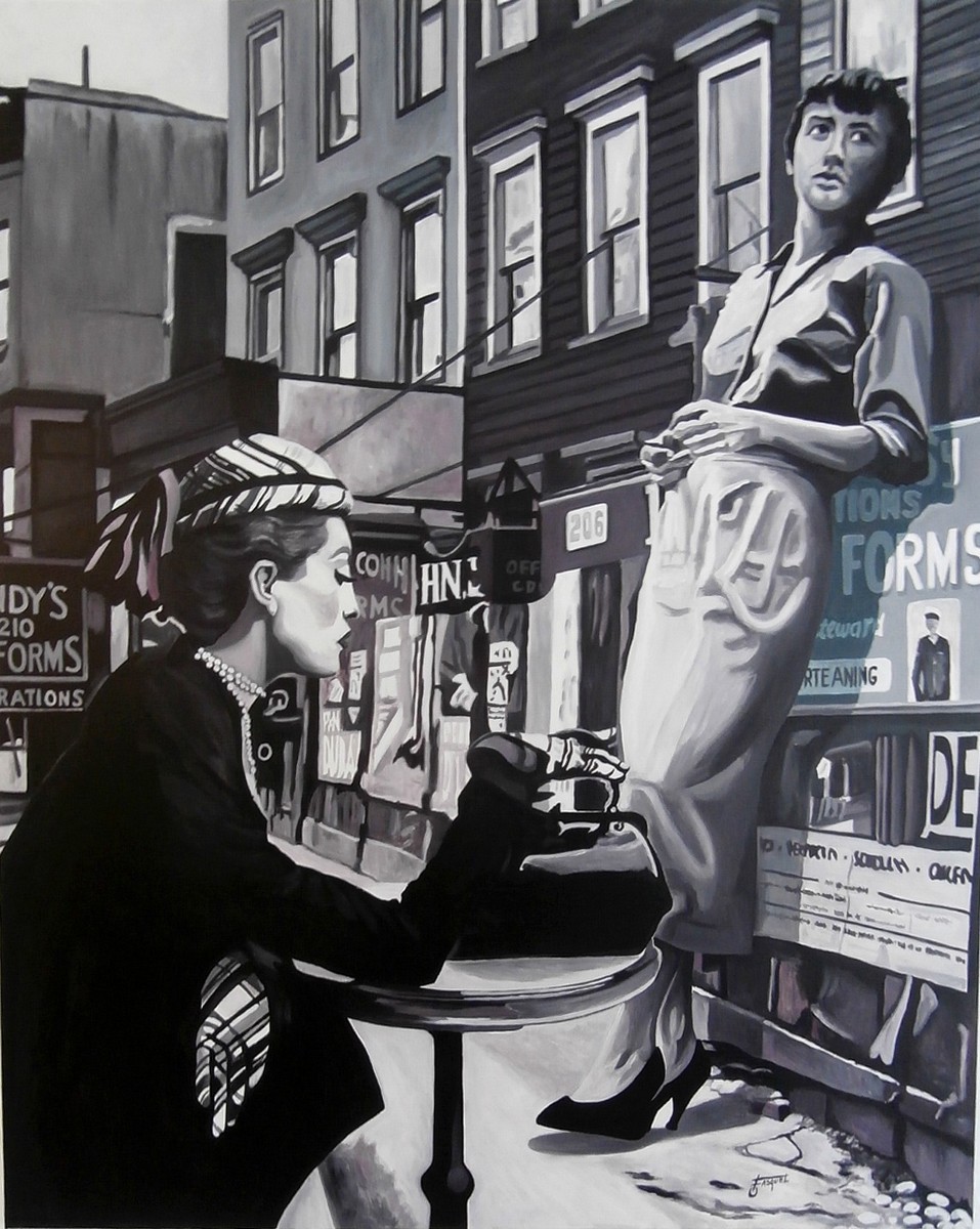 Parti d'une célèbre photo de Capucine, couplée avec Sagan, non ? incroyable la maîtrise que vous avez pour mettre ainsi en scène ces deux icônes d'une époque dans un décor très américain, je suis scotchée, c'est superbe !
