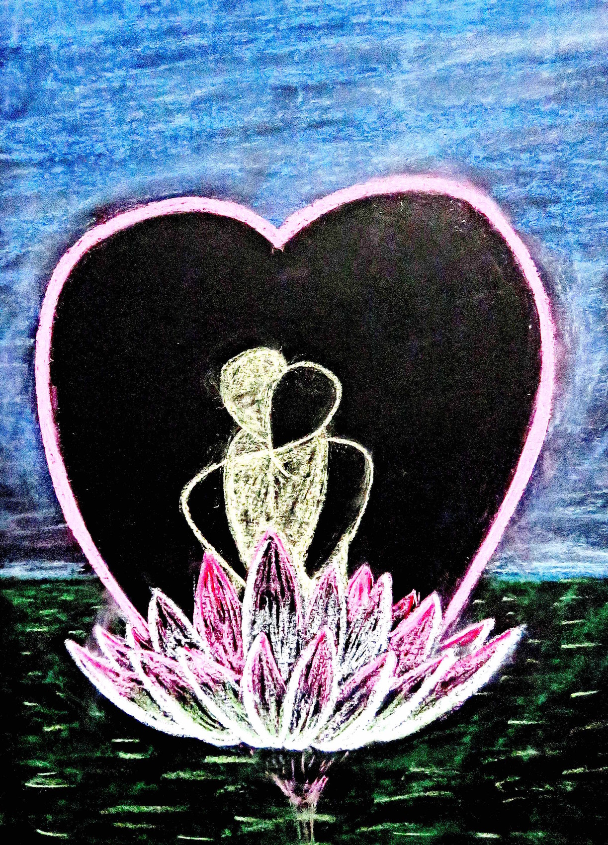Craies de couleur, février 2017, 29,7 x 21 cm. En hommage à l’amour, aux amoureux et aux Valentin. === Colored chalks, 2017. In tribute to love, lovers and Valentin. === Muriel REULET Artnaturl