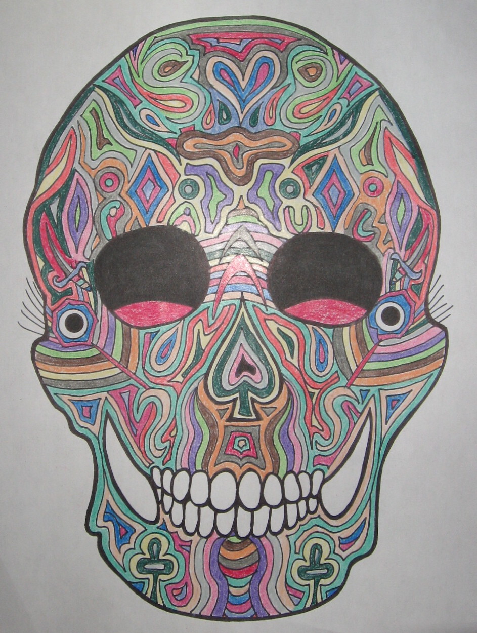 Dessin au crayon de feutre noir et crayons de couleurs.