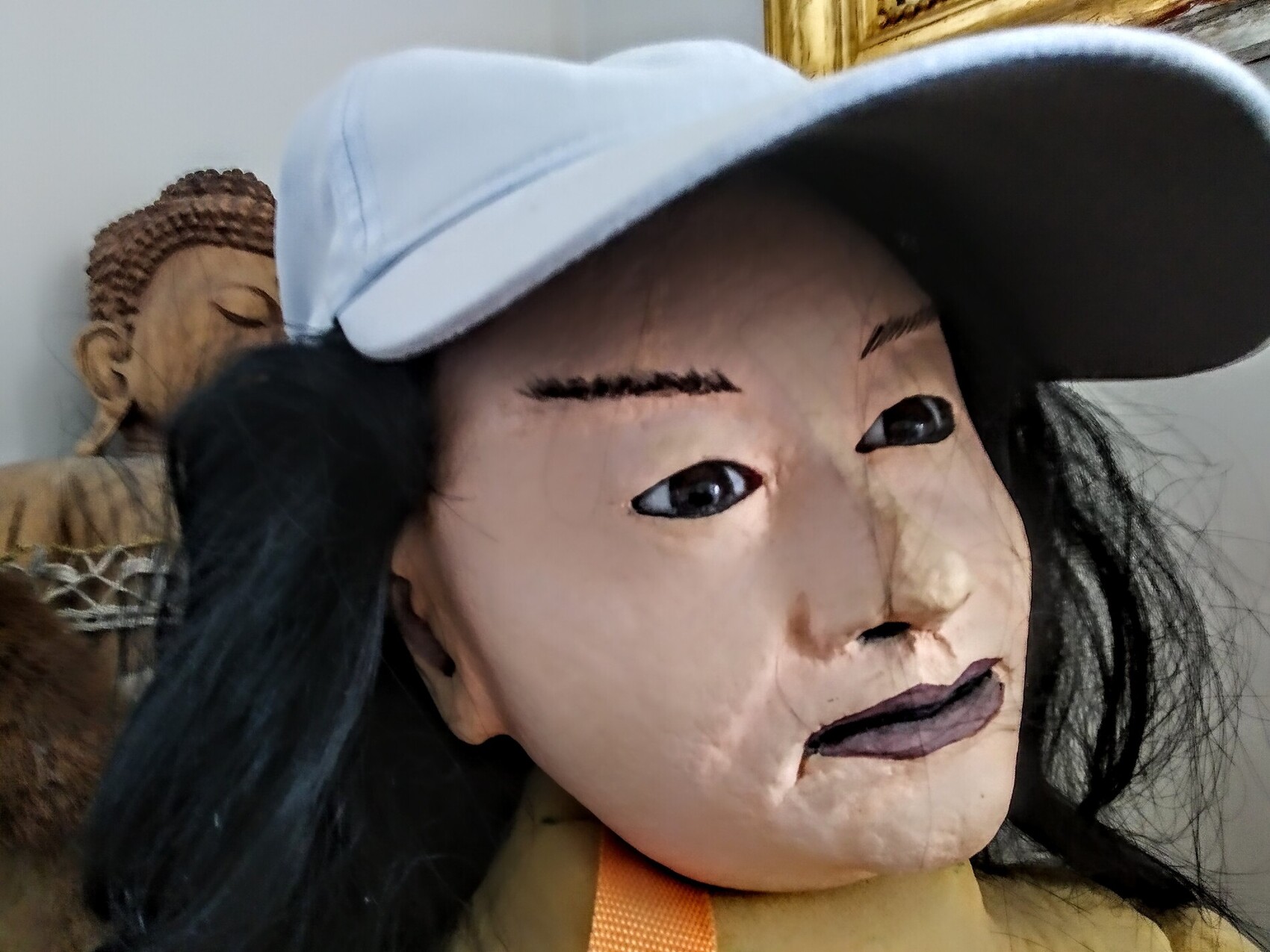Bonjour Papier Graf tttt. Et collé À papier peint. Poudre pâte à bois dessus Et petit ponçage à sec à la main Papier fin. Oeil en verre cheveux natte naturel. Bonne soirée patmort 1