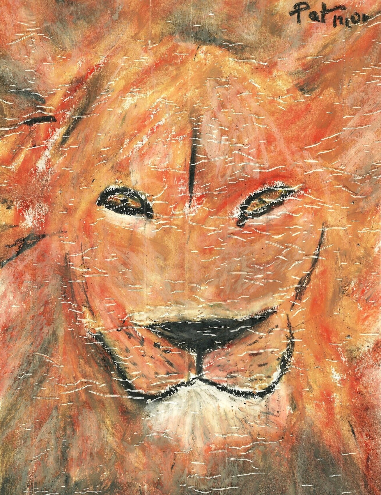 Pastel gras sur papier 2005 "Rase lui la crinière, tu ne prendras jamais la royauté du lion. Rase moi la barbe, imprenable est ma rébellion." Médine