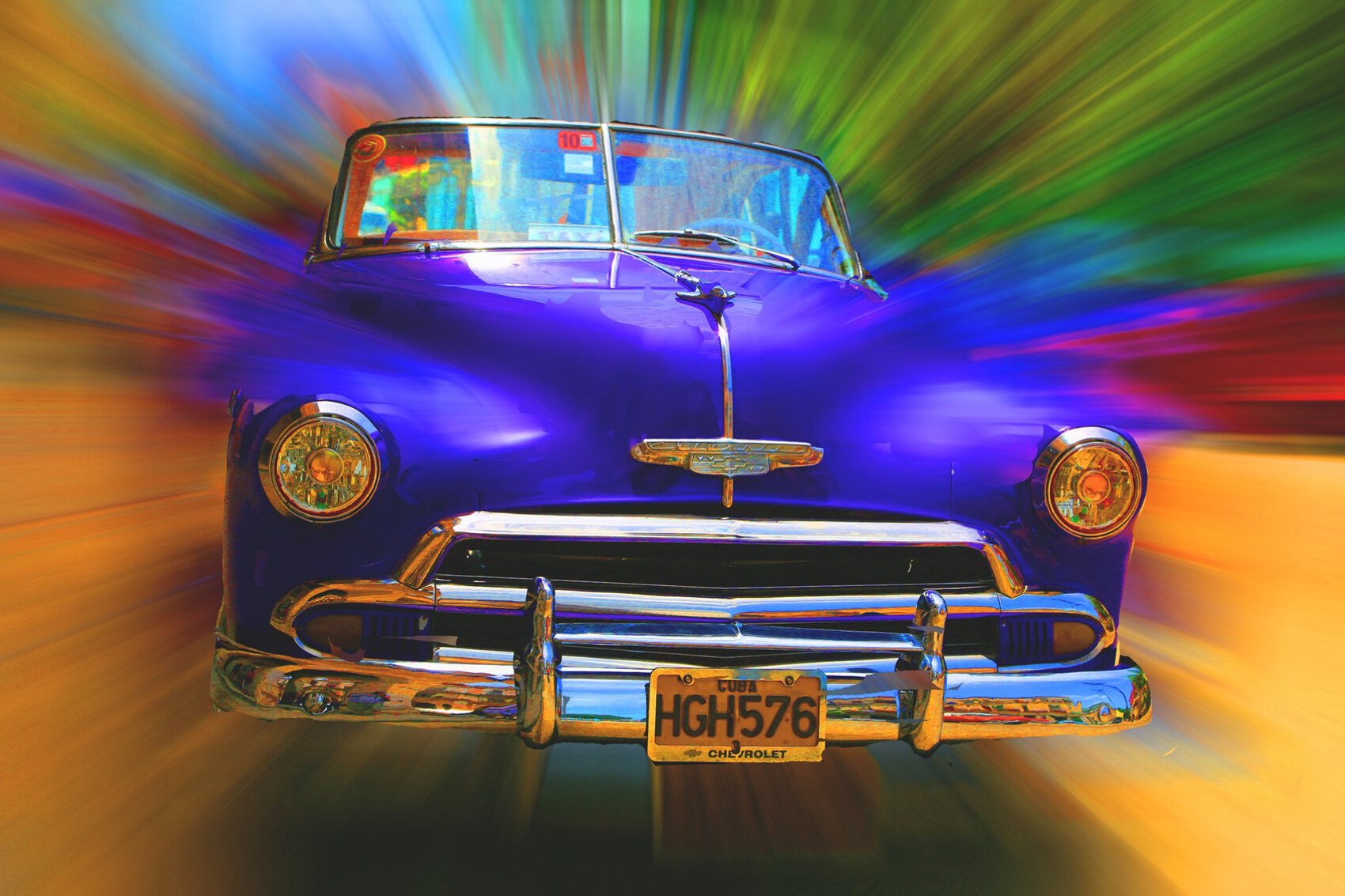 Tableau aluminium/acrylique 40 X 60 voiture prisée photo à CUBA flou radial et travail sur les couleurs