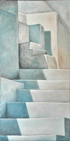 Acrylique sur toile Format : 40 x 80 cm Grèce, Santorin, Oia, Escalier