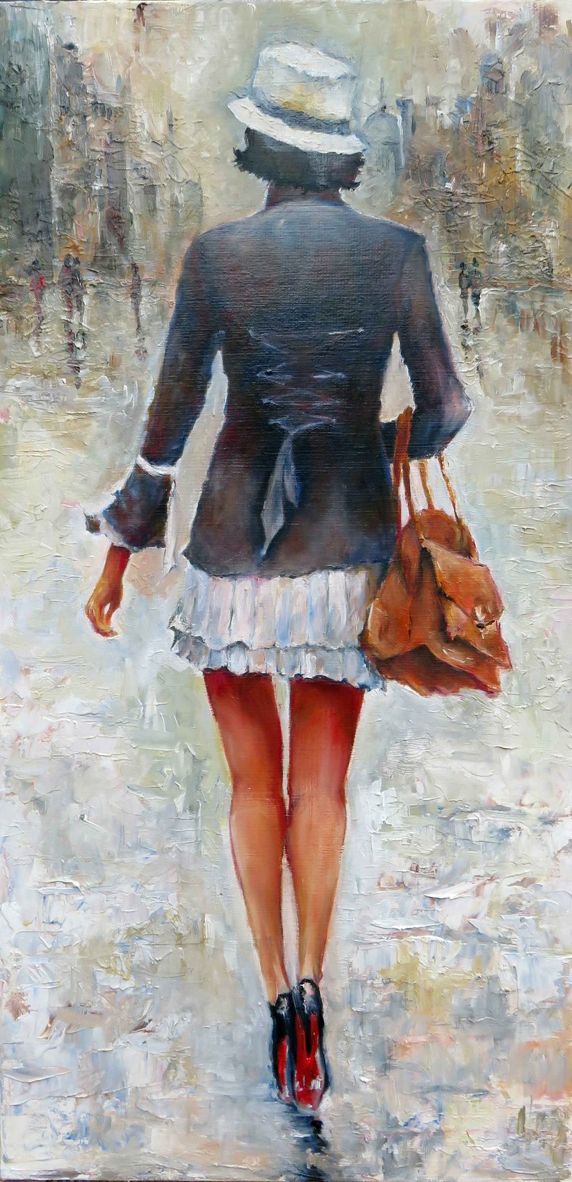 Très impressionnant ! J'aime cet effet pluie, la silhouette quelque peu brumeuse du personnage et en même temps très réaliste, sa démarche, le style... Belle peinture ! Curieuse du coup de découvrir un peu plus votre galerie