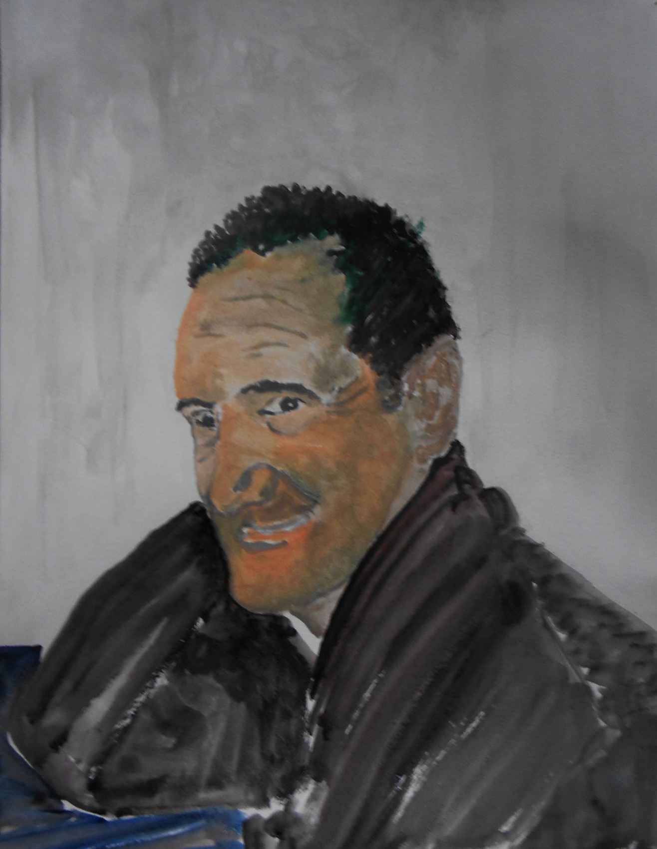 un des amusements réalisés dans le cadre de "T'ché goules de d'là", exposé au Café de l'Ile à Bouin 85230 en vu de constituer un trombinoscope des quelques gens du village et qui s'intitulera, "cent visages de gens de bouin" - acrylique dilué sur papier dessin 200 grs au format 36x48 cm