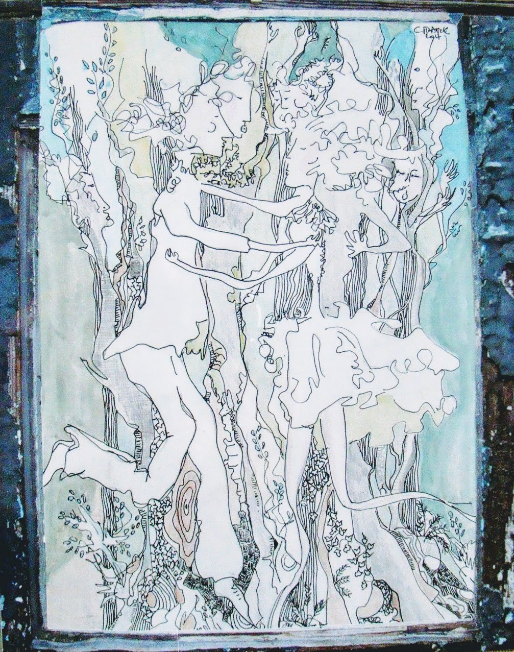 24x30cm Ils m'ont accompagnée cet hiver, les danseurs, et leurs amis, et ils ont vécu plein de petites aventures. Ils ont rencontré ";coquins coquines en forê"; ils sont allés au";dancing au bois";, et ils ont joué avec eux à "cache cache en forêt" Tous ces derniers mois ,j'ai partagé avec eux mes envies d'évasion bucolique, et ce désir régulier de me fondre dans le végétal. Mon compagnon, mon ami mon mari n'est pas jaloux, puisqu'il est du voyage. Ceux qui le connaissent le reconnaitront, l