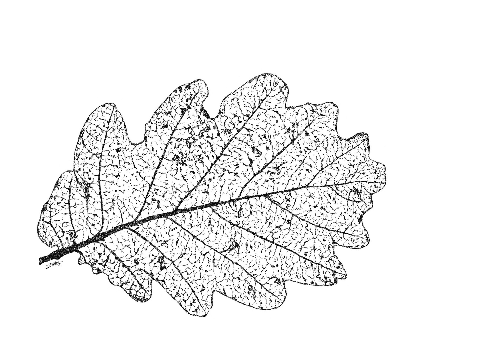 Quand il ne reste plus que la structure de la feuille... Encre de chine