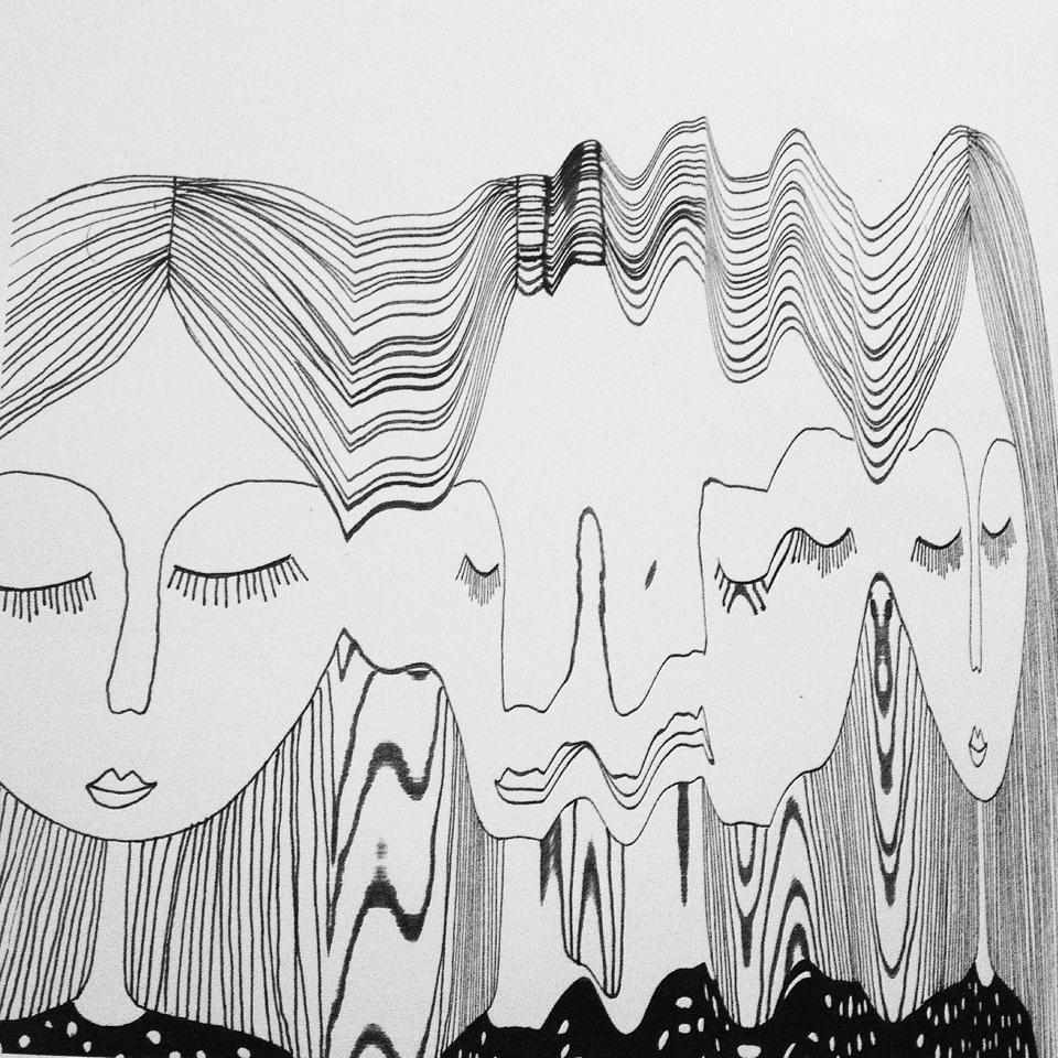 Dessin graphique au feutre fin noir format A4 sur papier canson à grain.