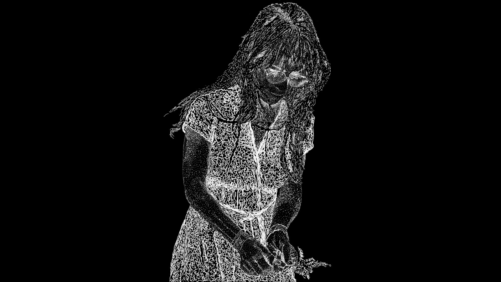 Photo directement reprise en dessin pointillisme.