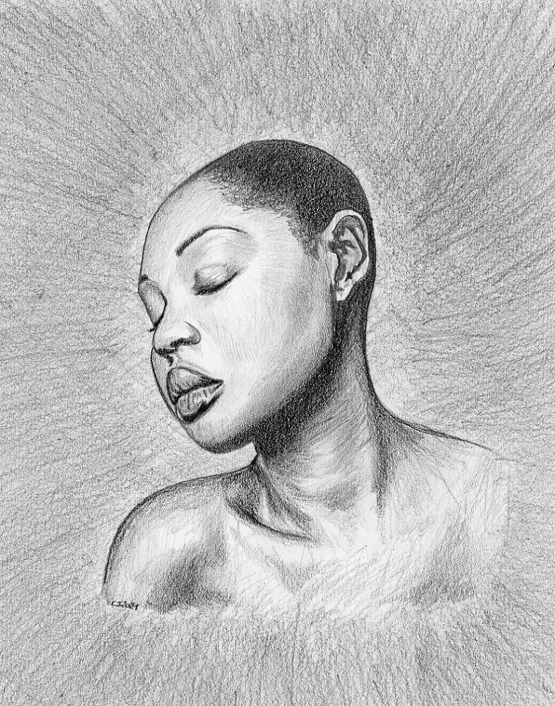 Portrait d'une femme africaine, au crayon de bois et d'après photo. 18 cm x 24 cm. Réalisé en 2021. "Femme nue, femme noire. Je chante ta beauté qui passe, forme que je fixe dans l’Éternel. Avant que le destin jaloux ne te réduise en cendres pour nourrir les racines de la vie..." (extrait d'un poème de Léopold Sédar Senghor).