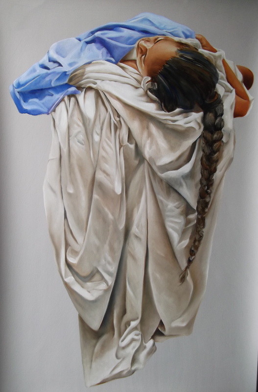 Ce drapé est original car rendu encore plus vivant par la présence en son sein de cette femme qui, par sa position, s'y accorde. L'ensemble est magnifique. Félicitations à l'artiste.
